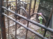 Далее демонтируем все с территории могилы и выпрямляем ограду. Для этого потребовалось полностью откопать две задние ножки, выпрямить ограду и заново залить цементом.